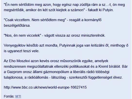 JANUÁR 20 - PUTYIN BEOLVASOTT A BUZIKNAK
